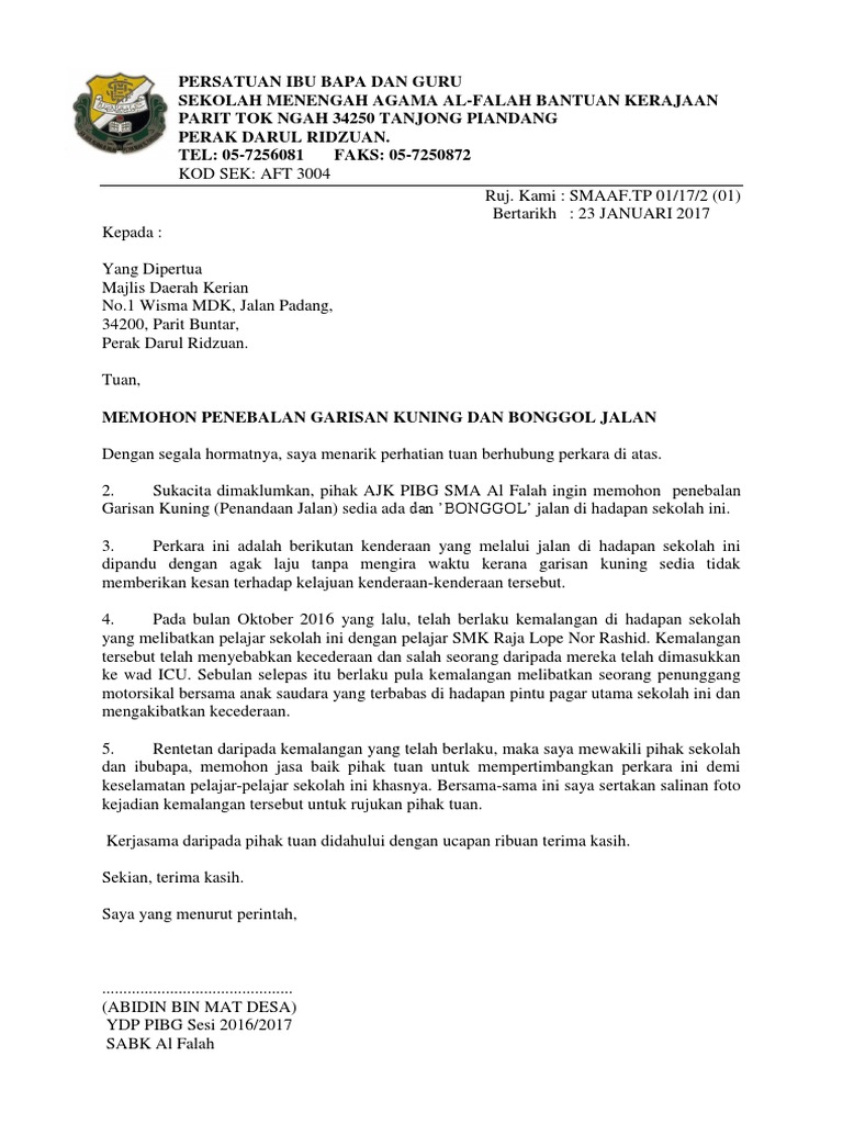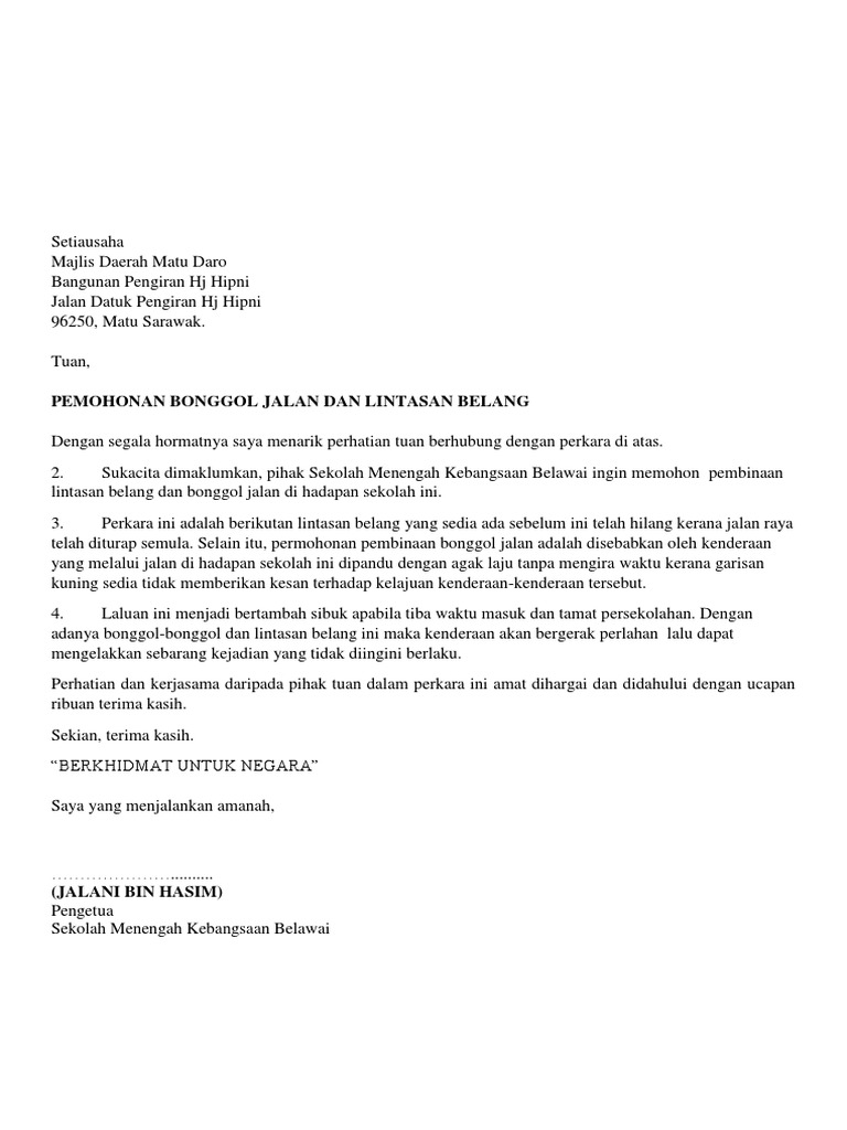 Surat Memohon Pembinaan Bonggol Jalan Raya Pdf