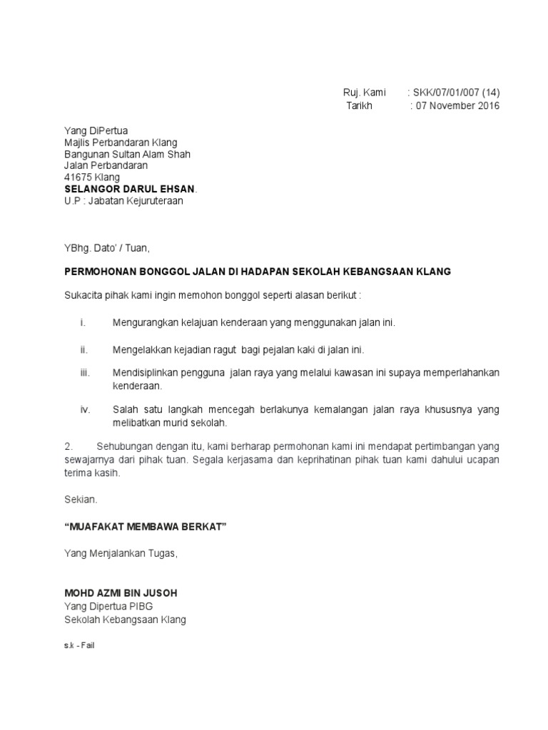 Surat Permohonan Bonggol Jalan Pdf